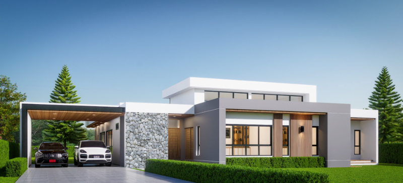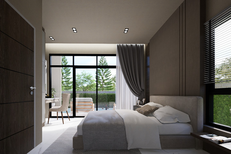 Only 2 units left! A Modern Luxury-style pool villa with a private luxurious swimming pool and a 6-meter high Double Volume Space living room, just 9 kilometers from the beach!